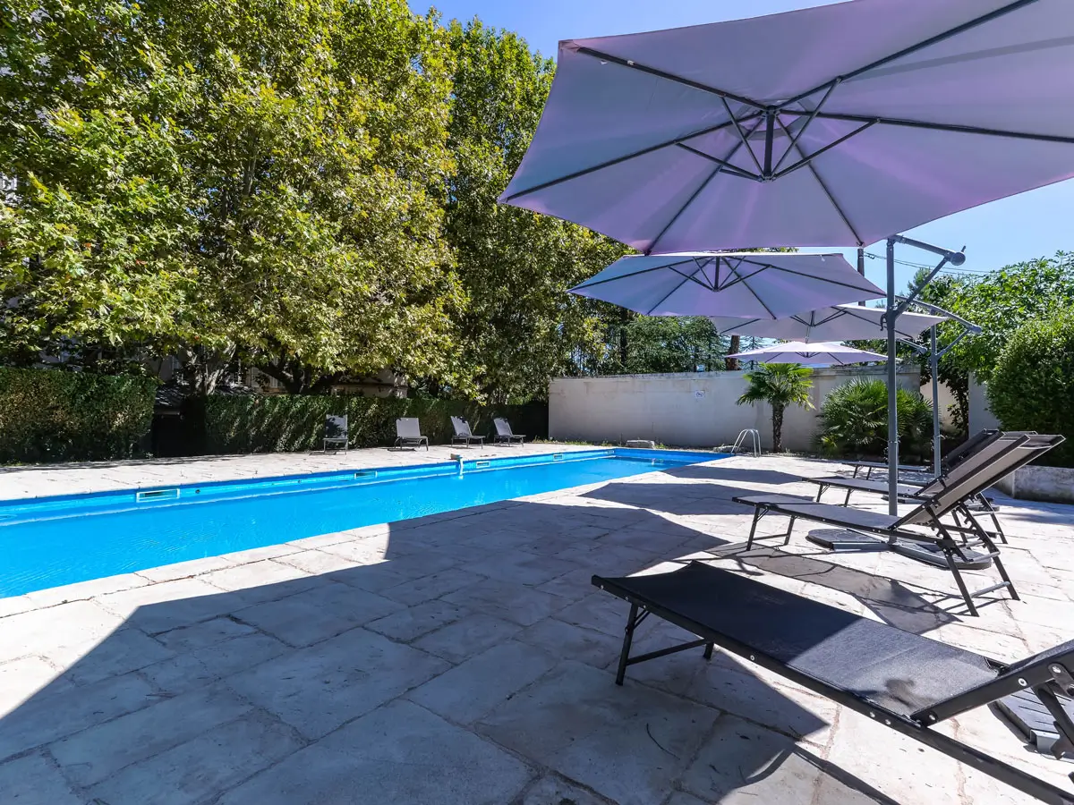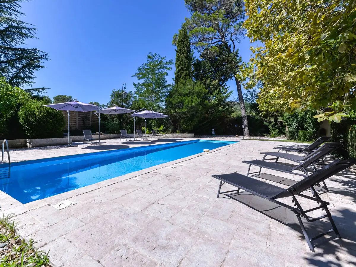 - La grande terrasse : Le cœur de votre journée, idéale pour un déjeuner ensoleillé, un buffet convivial ou un apéritif au bord de la piscine.